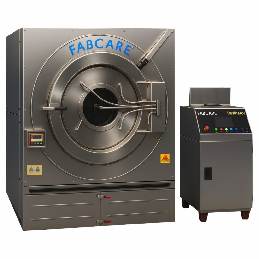 Fabcare Resinator, the DRY to DRY Process Machine benefits Finishing Garment companies in both economical & environmental aspects. The use of MIST SPRAY technology significantly reduces the use of all resources: water use reduction up to 90%, energy use reduction up to 47% and eliminating chemical wastes associated to water dumping and lesser load on ETP.